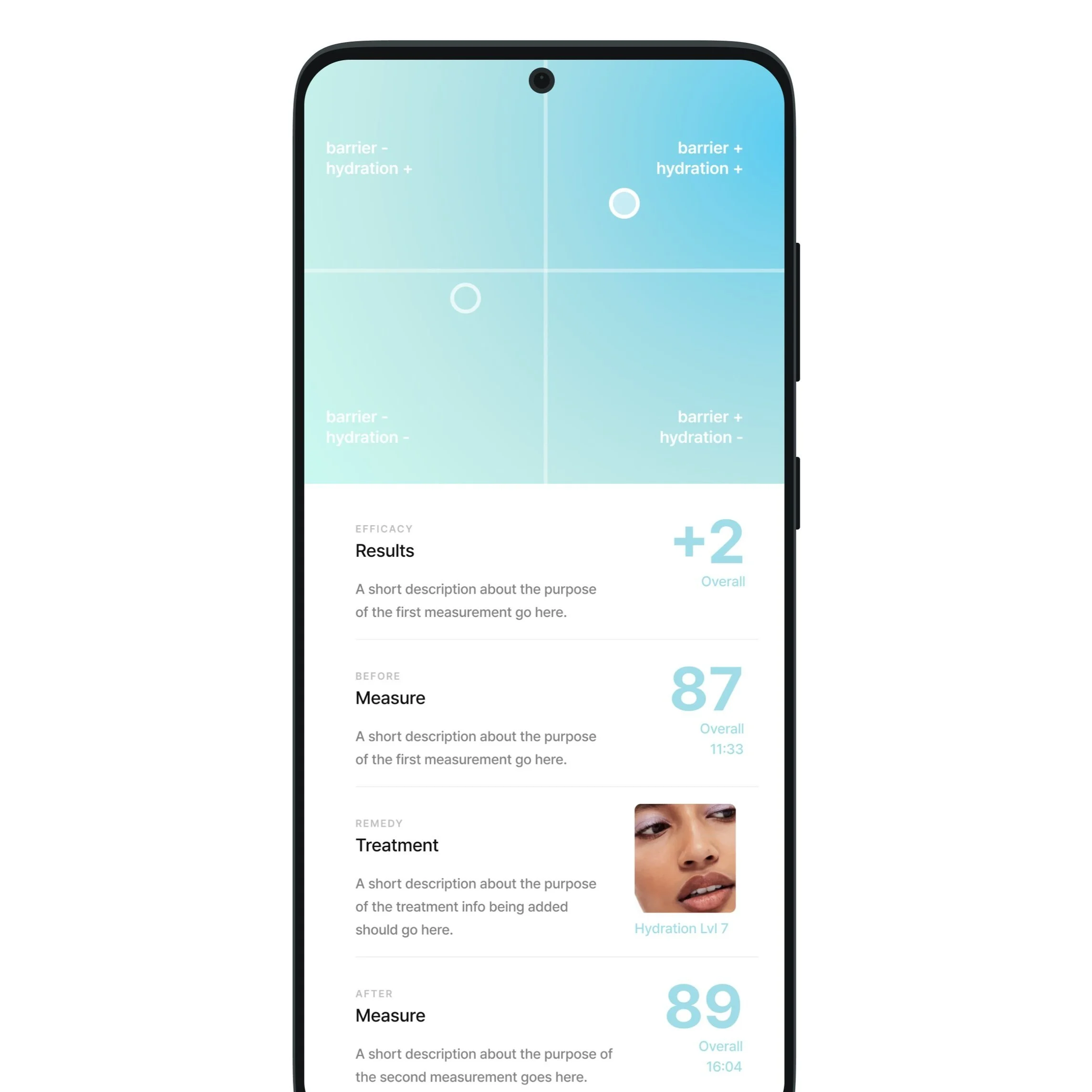 Measure your skin with scientifically-proven biomarkers for the skin: Transepidermal Water Loss (TEWL) and Stratum Corneum Hydration (SCH). Together, these biomarkers give you an in-depth snapshot of your skin barrier health.